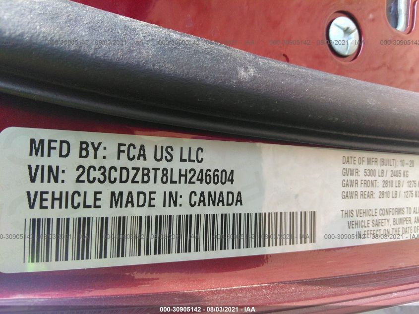 2020 DODGE CHALLENGER – 2C3CDZBT8LH246604