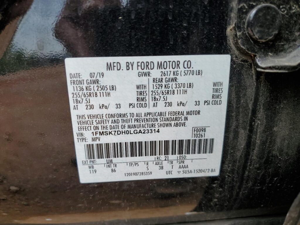 | VIN Number | 1FMSK7DH0LGA23314 |