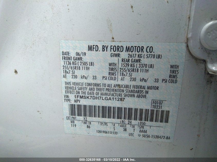 VIN: 1FMSK7DH7LGA11287