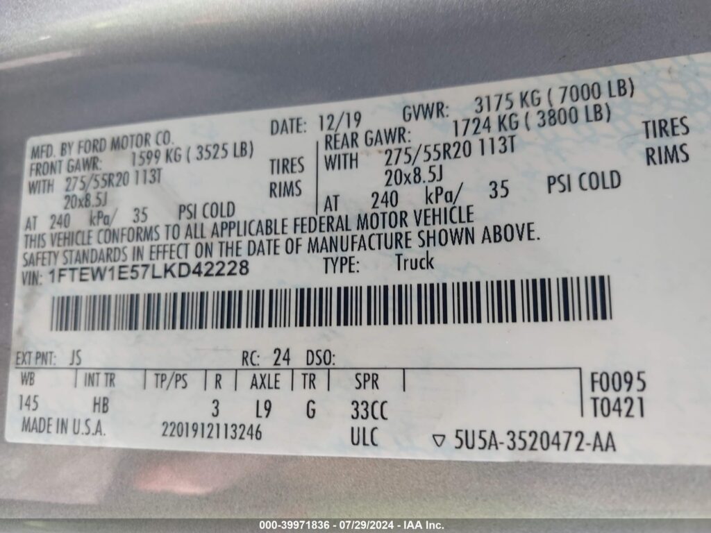 2020 Ford F-150 – 1FTEW1E57LKD42228