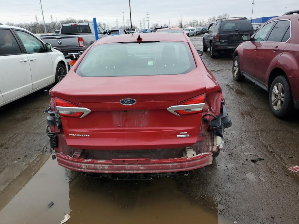 This 2020 FORD FUSION (RED) is equipped with an engine designed to balance performance and efficiency. According to the auction listing, the vehicle had 56,368 miles at the time of sale.