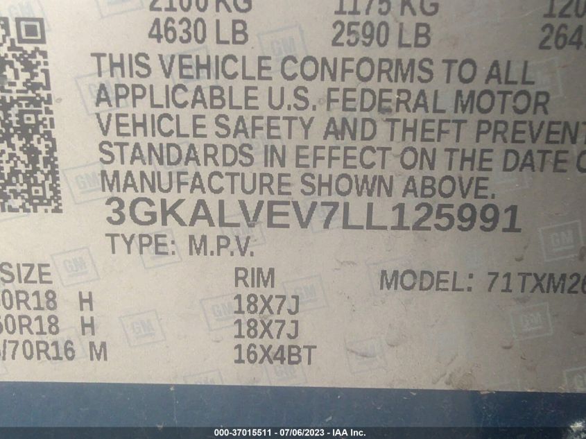 | VIN Number | 3GKALVEV7LL125991 |