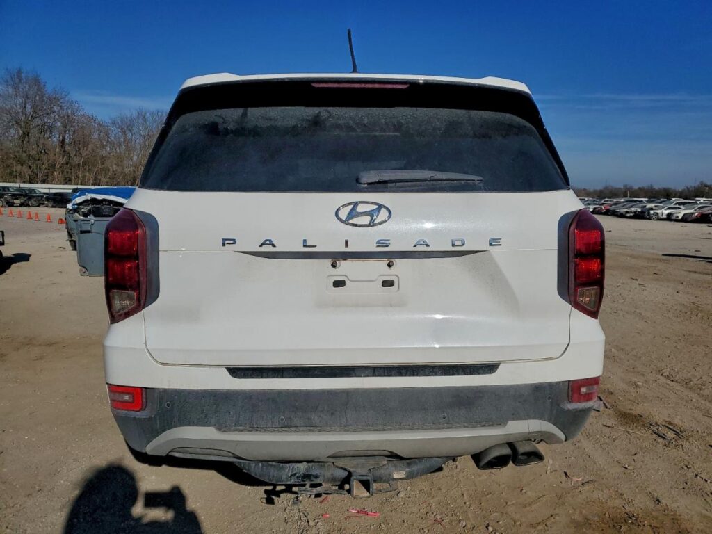 This 2020 Hyundai Palisade (White) is equipped with an engine designed to balance performance and efficiency. According to the auction listing, the vehicle had 124,086 miles at the time of sale.