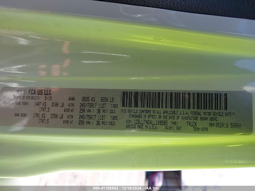 | VIN Number | 1C6JJTAG4LL109585 |