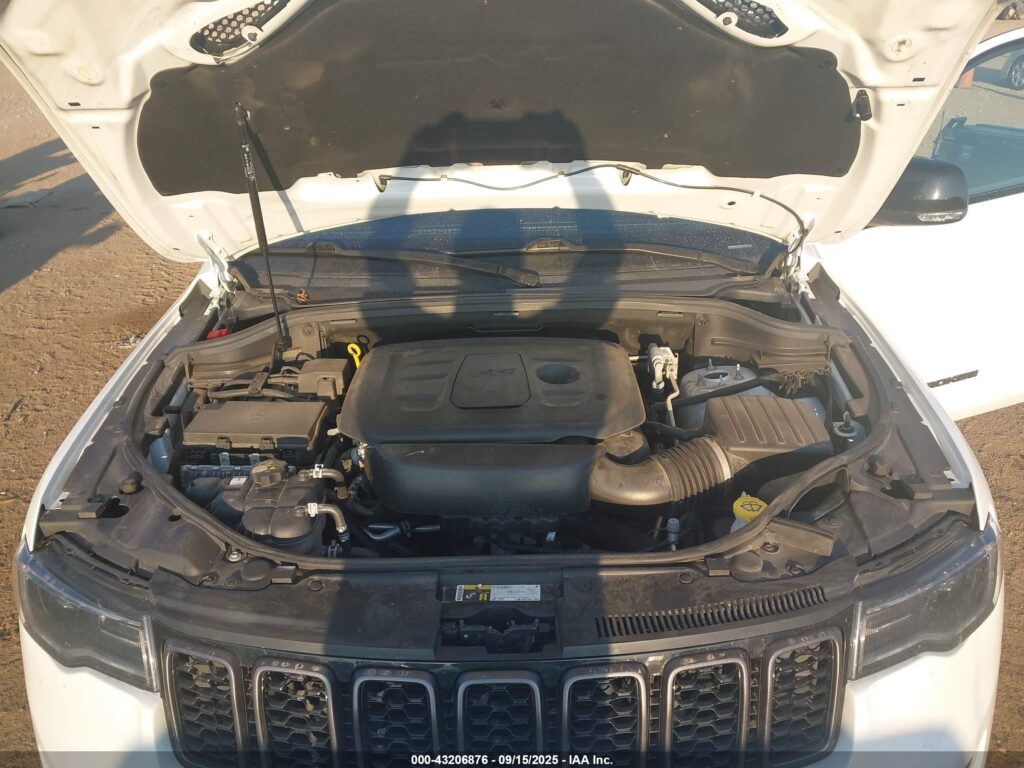 This 2020 Jeep Grand Cherokee (White) is equipped with an engine designed to balance performance and efficiency. According to the auction listing, the vehicle had 78,531 miles at the time of sale.