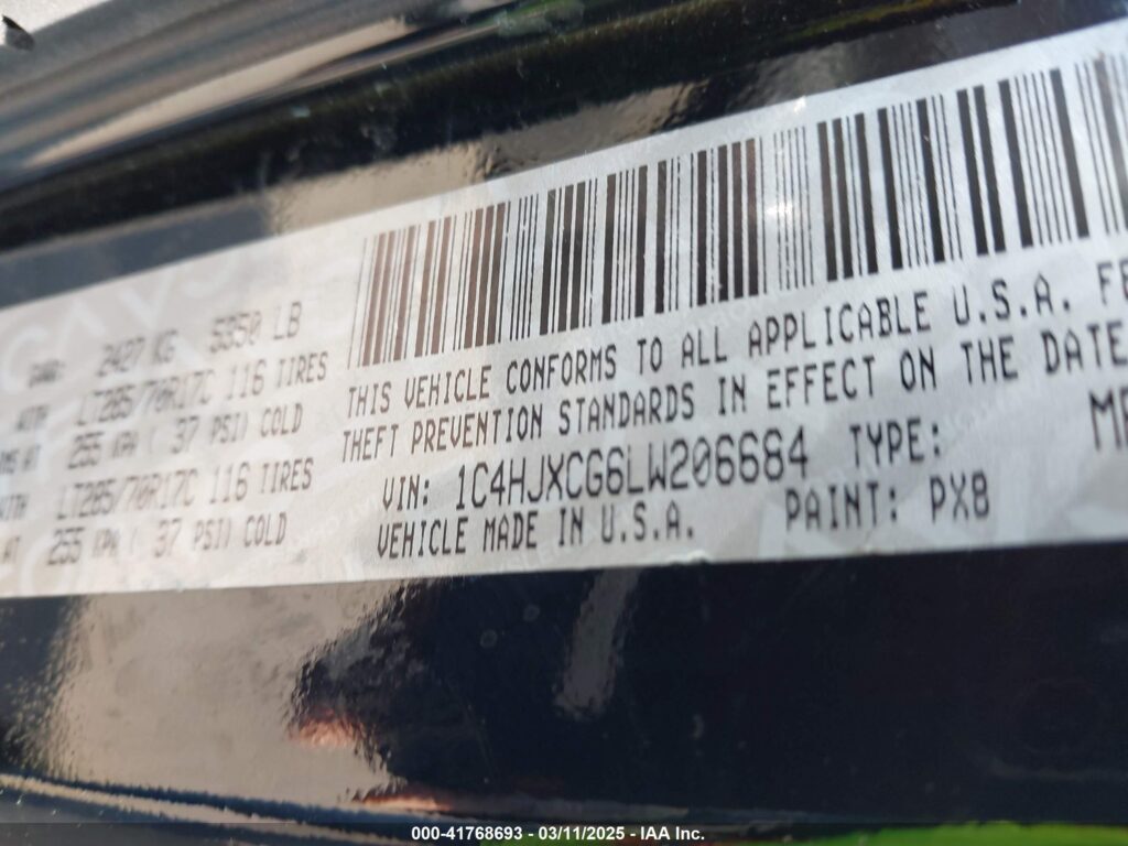 | VIN Number | 1C4HJXCG6LW206684 |