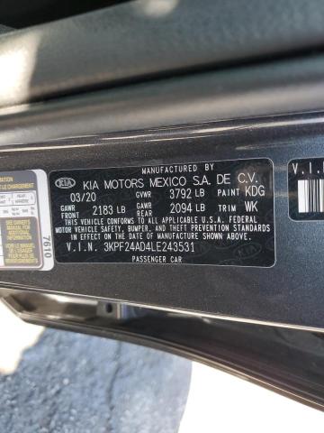 This 2020 Kia Forte (Charcoal) comes from a major insurance auction in the USA or Canada. All information on this page is linked to the vehicle’s VIN (3KPF24AD4LE243531), which helps confirm where the car was listed and what condition it was in at the time of sale.
