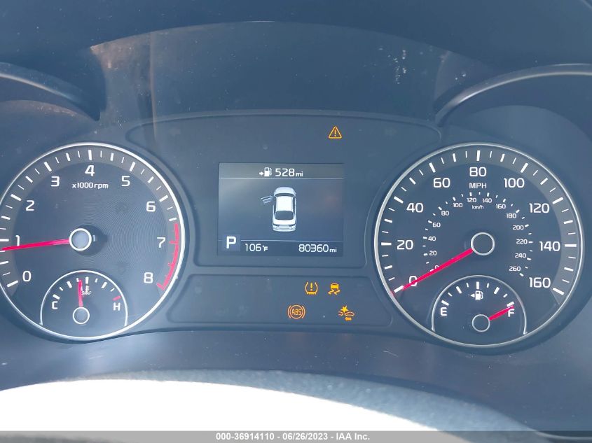 This 2020 Kia Optima (Black) is equipped with an engine designed to balance performance and efficiency. According to the auction listing, the vehicle had 80,360 miles at the time of sale.