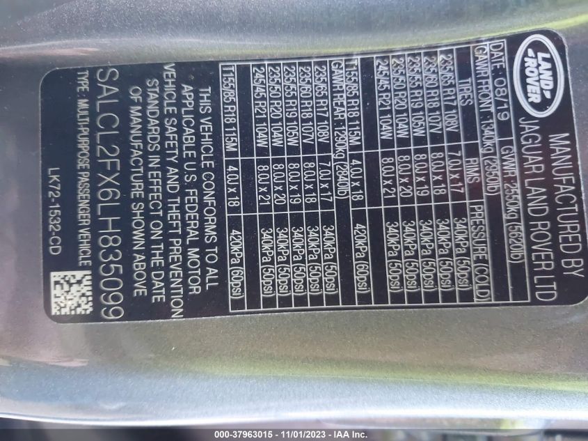 2020 Land Rover Discovery Sport – SALCL2FX6LH835099