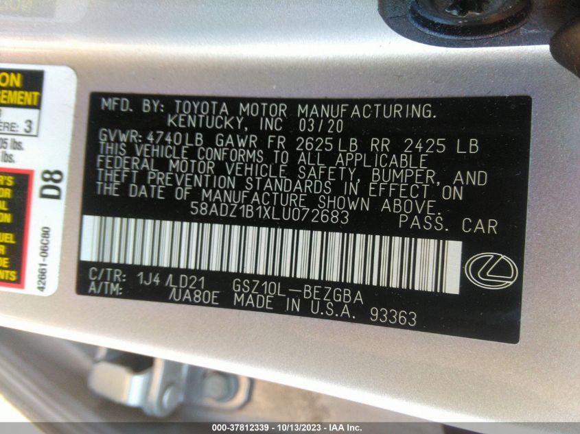 2020 LEXUS ES – 58ADZ1B1XLU072683