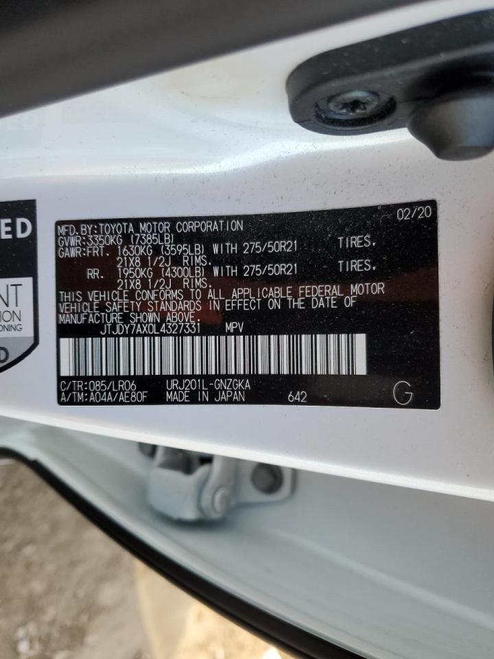 This 2020 Lexus LX 570 (White) comes from a major insurance auction in the USA or Canada. All information on this page is linked to the vehicle’s VIN (JTJDY7AX0L4327331), which helps confirm where the car was listed and what condition it was in at the time of sale.