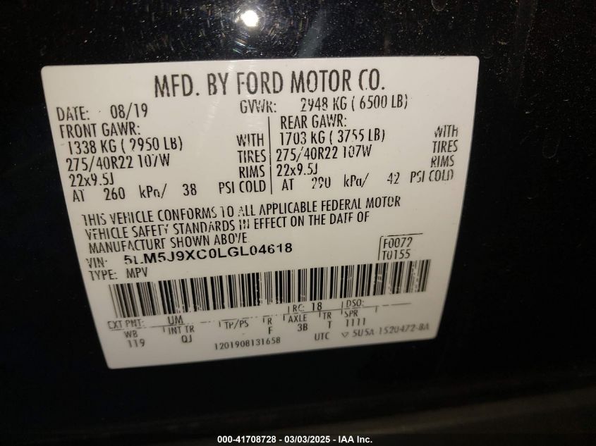 | VIN Number | 5LM5J9XC0LGL04618 |