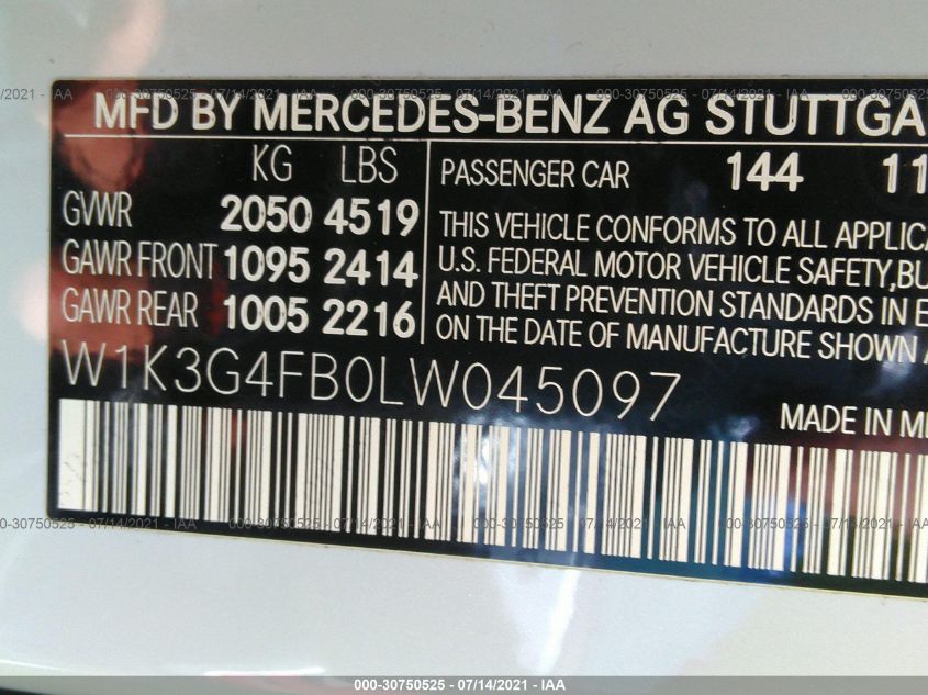 | VIN Number | W1K3G4FB0LW045097 |