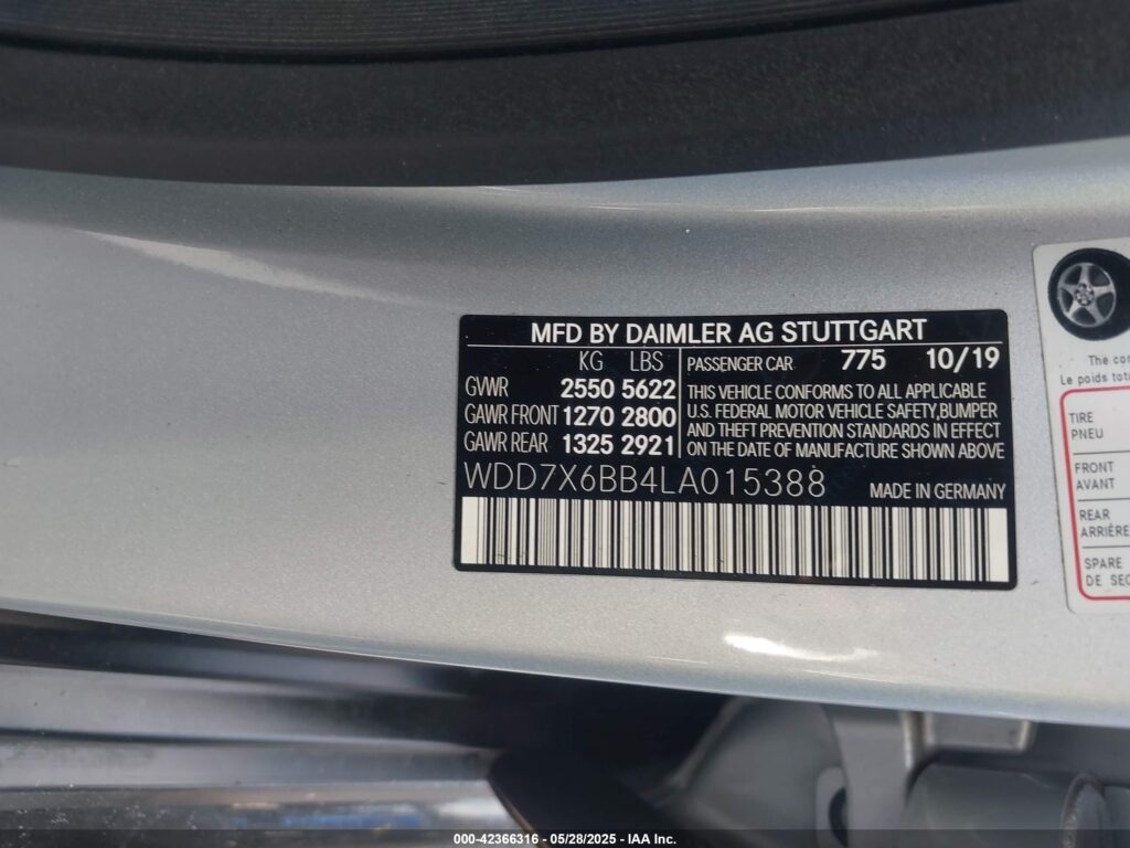 | VIN Number | WDD7X6BB4LA015388 |