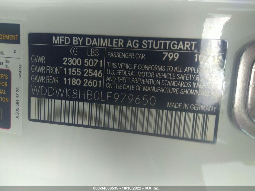 2020 Mercedes-Benz C-Class – WDDWK8HB0LF979650
