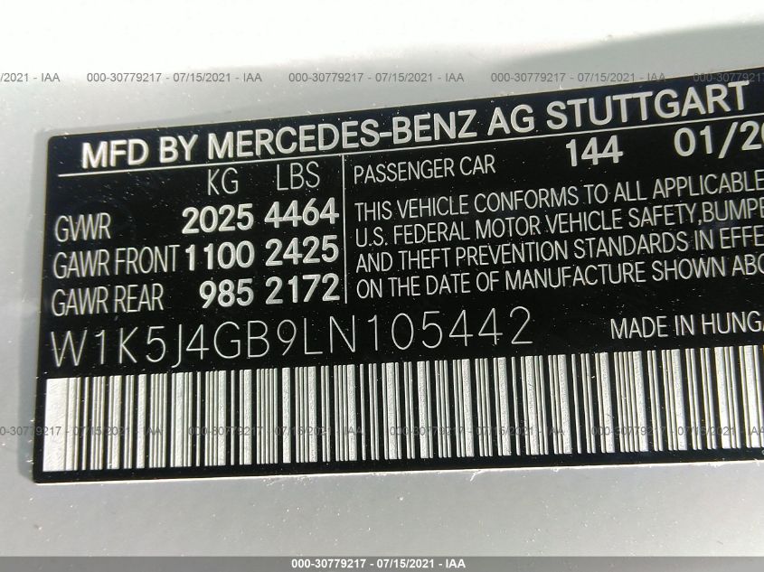 2020 Mercedes-Benz CLA-Class – W1K5J4GB9LN105442
