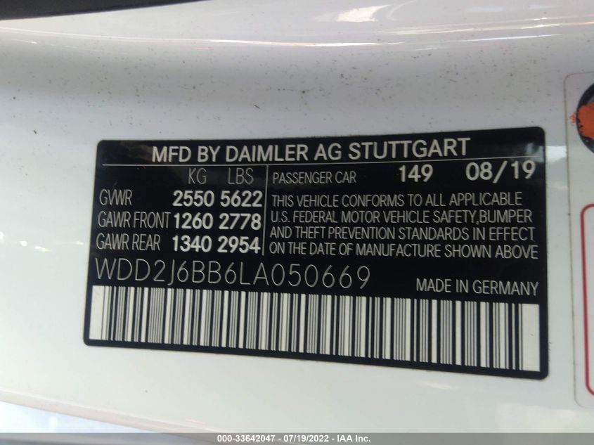 2020 MERCEDES-BENZ CLS – WDD2J6BB6LA050669