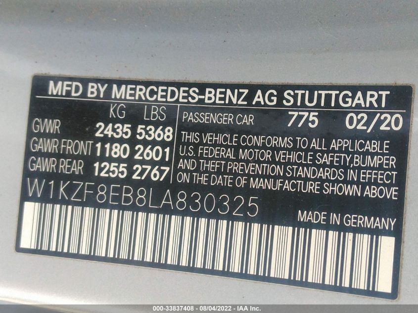 2020 Mercedes-Benz E-Class – W1KZF8EB8LA830325