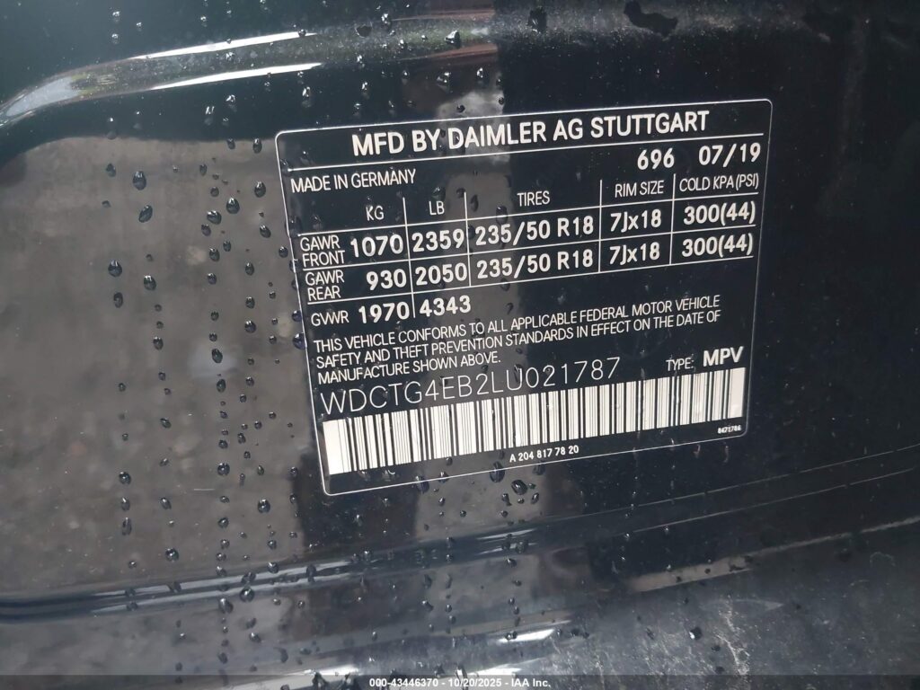 This 2020 Mercedes-Benz GLA-Class (Black) comes from a major insurance auction in the USA or Canada. All information on this page is linked to the vehicle’s VIN (WDCTG4EB2LU021787), which helps confirm where the car was listed and what condition it was in at the time of sale.