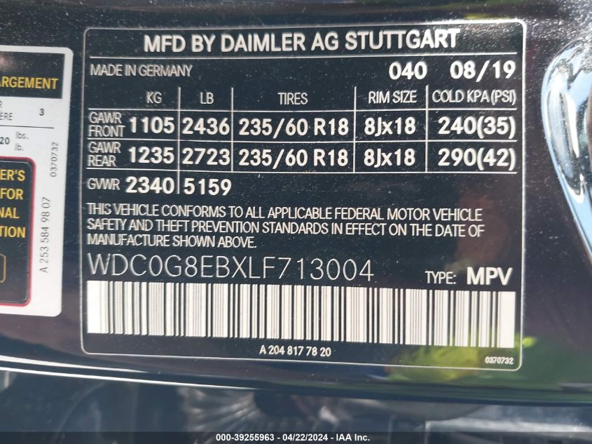 | VIN Number | WDC0G8EBXLF713004 |