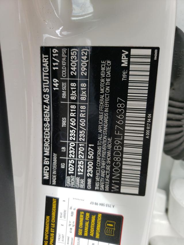 This 2020 Mercedes-Benz GLC-Class (White) comes from a major insurance auction in the USA or Canada. All information on this page is linked to the vehicle’s VIN (W1N0G8DB9LF766387), which helps confirm where the car was listed and what condition it was in at the time of sale.
