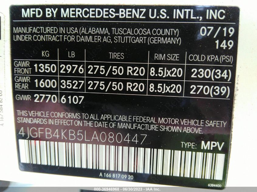 VIN: 4JGFB4KB5LA080447