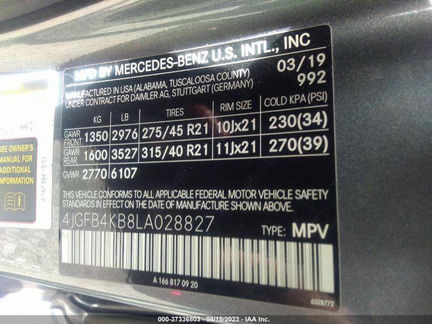 VIN Number4JGFB4KB8LA028827
