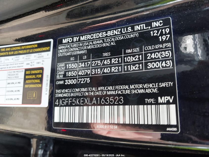 2020 MERCEDES-BENZ GLS 450 – 4JGFF5KEXLA163523