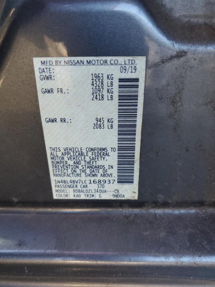 This 2020 Nissan Altima (Grey) comes from a major insurance auction in the USA or Canada. All information on this page is linked to the vehicle’s VIN (1N4BL4BV7LC168937), which helps confirm where the car was listed and what condition it was in at the time of sale.