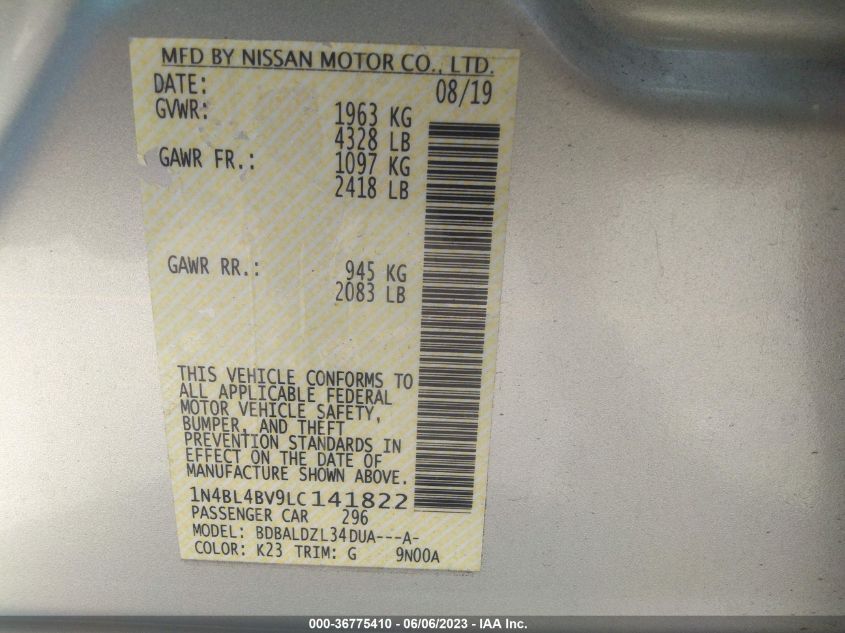 2020 Nissan Altima – 1N4BL4BV9LC141822