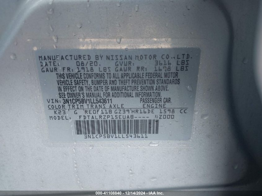 | VIN Number | 3N1CP5BV1LL543611 |