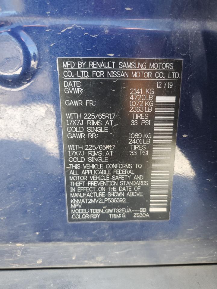 This 2020 NISSAN ROGUE (BLUE) comes from a major insurance auction in the USA or Canada. All information on this page is linked to the vehicle’s VIN (KNMAT2MV2LP536392), which helps confirm where the car was listed and what condition it was in at the time of sale.