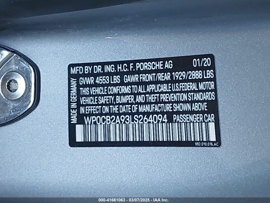 | VIN Number | WP0CB2A93LS264094 |