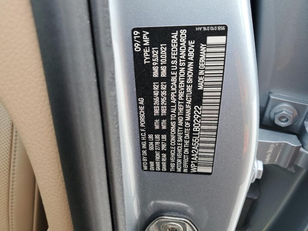 | VIN Number | WP1AA2A55LLB02922 |