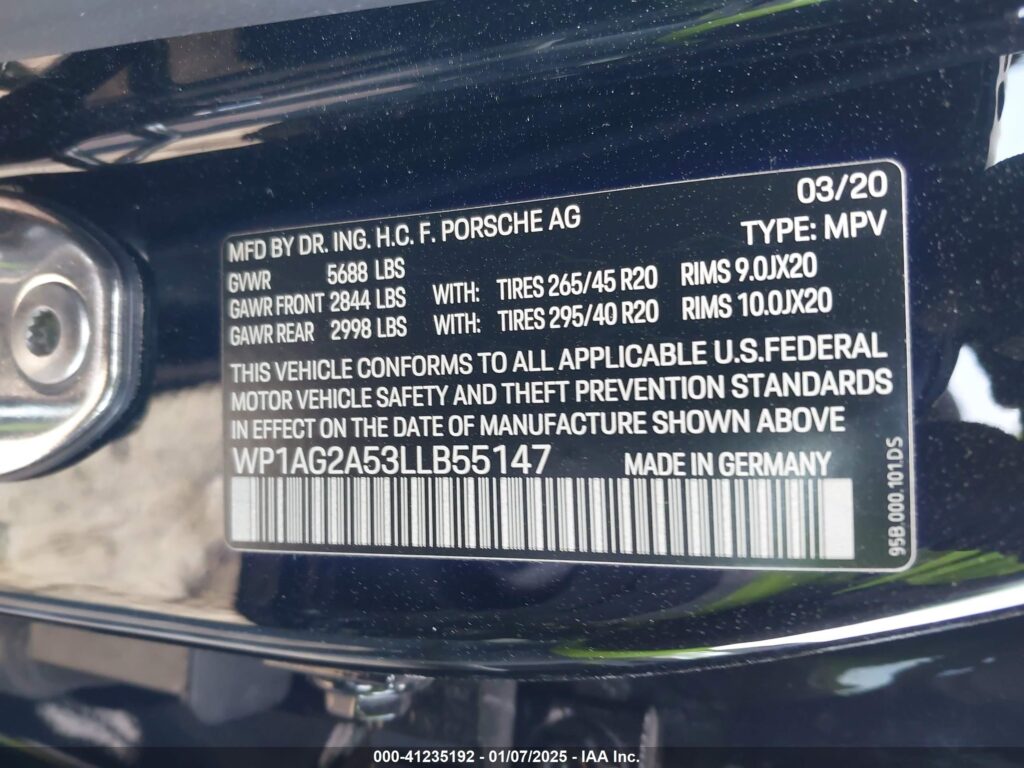 | VIN Number | WP1AG2A53LLB55147 |
