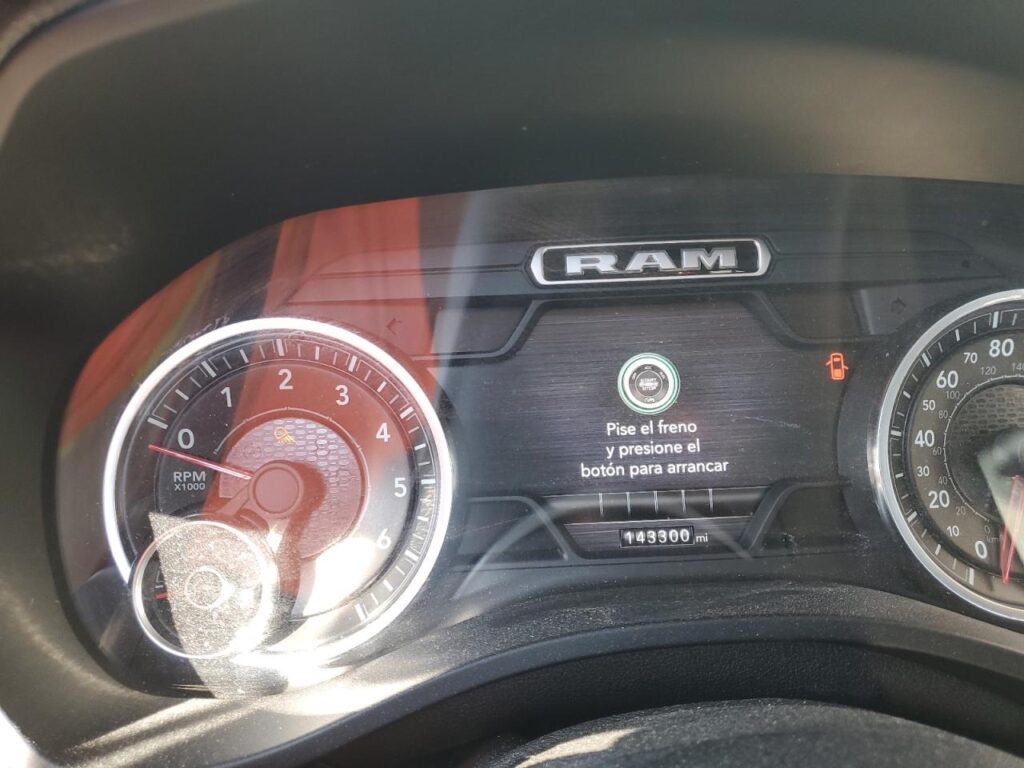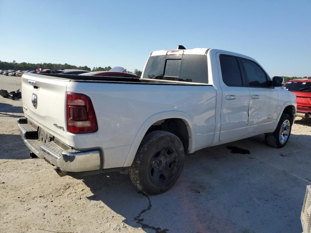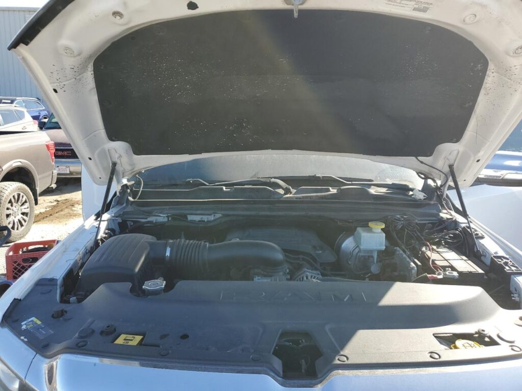 This 2020 RAM 1500 (WHITE) is equipped with an engine designed to balance performance and efficiency. According to the auction listing, the vehicle had 143,300 miles at the time of sale.