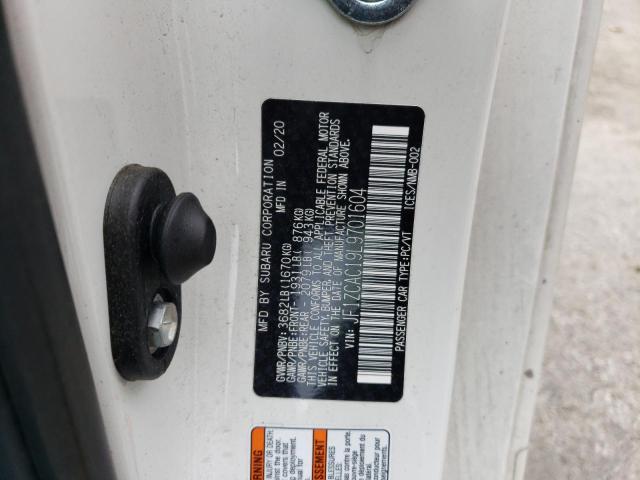 This 2020 SUBARU BRZ (WHITE) comes from a major insurance auction in the USA or Canada. All information on this page is linked to the vehicle’s VIN (JF1ZCAC19L9701604), which helps confirm where the car was listed and what condition it was in at the time of sale.
