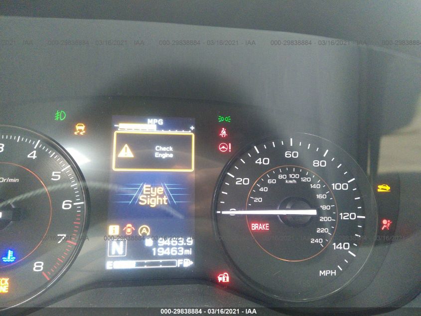 This 2020 SUBARU CROSSTREK (Black) is equipped with an engine designed to balance performance and efficiency. According to the auction listing, the vehicle had 19,463 miles at the time of sale.