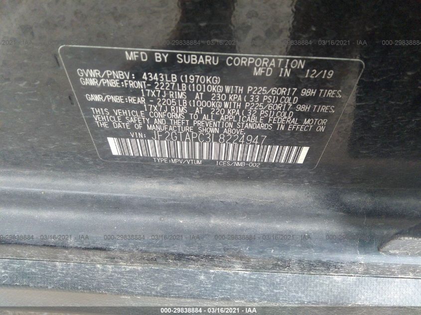2020 SUBARU CROSSTREK – JF2GTAPC3L8224947