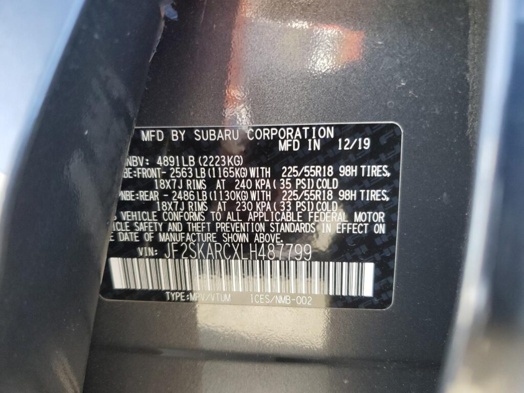 | VIN Number | JF2SKARCXLH487799 |