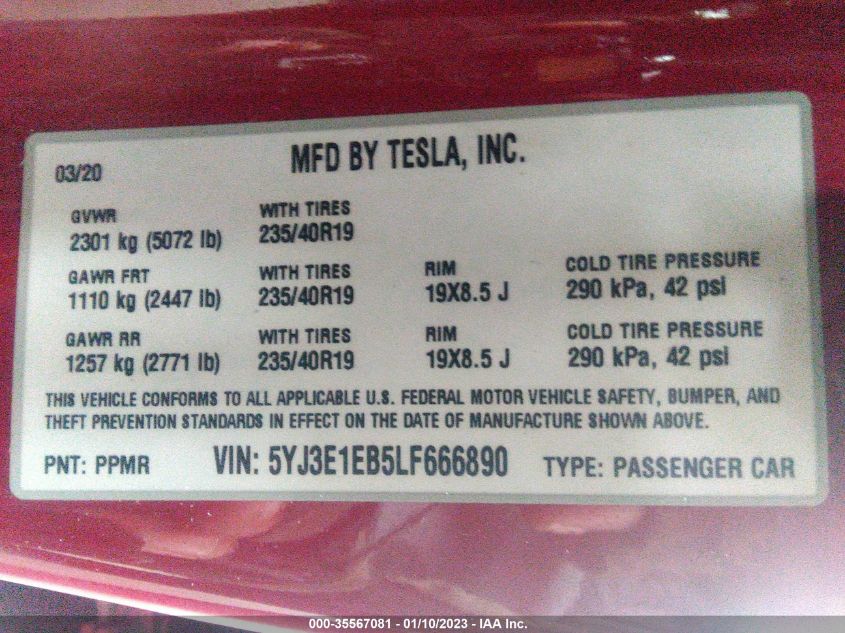 | VIN Number | 5YJ3E1EB5LF666890 |
