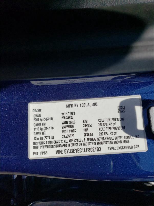 2020 Tesla Model 3 – 5YJ3E1EC1LF802103
