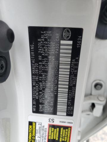 This 2020 TOYOTA CAMRY (WHITE) comes from a major insurance auction in the USA or Canada. All information on this page is linked to the vehicle’s VIN (4T1NZ1AK5LU045400), which helps confirm where the car was listed and what condition it was in at the time of sale.
