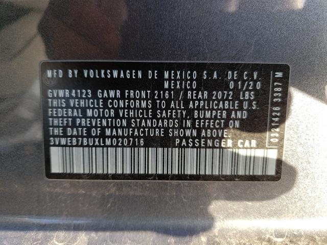 This 2020 Volkswagen Jetta (Grey) comes from a major insurance auction in the USA or Canada. All information on this page is linked to the vehicle’s VIN (3VWEB7BUXLM020716), which helps confirm where the car was listed and what condition it was in at the time of sale.
