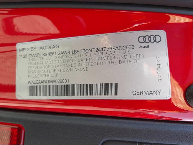 | VIN Number | WAUEAAF41MA029801 |