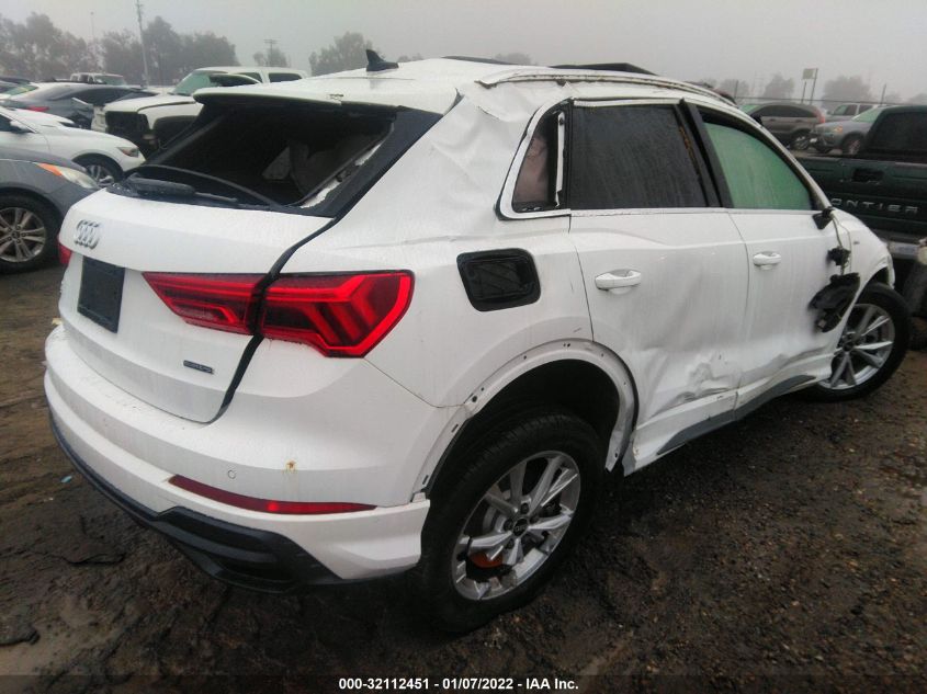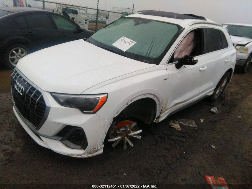 This 2021 Audi Q3 (White) is equipped with an engine designed to balance performance and efficiency. According to the auction listing, the vehicle had 1 miles at the time of sale.