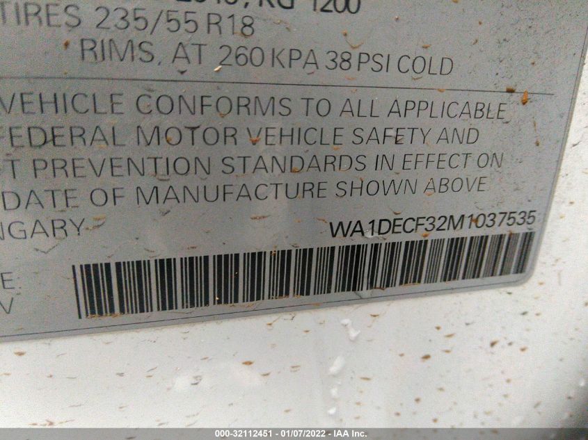 This 2021 Audi Q3 (White) comes from a major insurance auction in the USA or Canada. All information on this page is linked to the vehicle’s VIN (WA1DECF32M1037535), which helps confirm where the car was listed and what condition it was in at the time of sale.