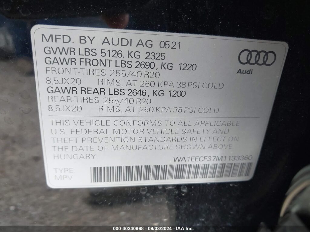 | VIN Number | WA1EECF37M1133360 |
