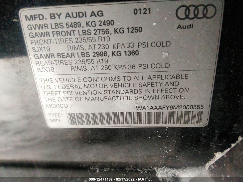 | VIN Number | WA1AAAFY6M2050555 |