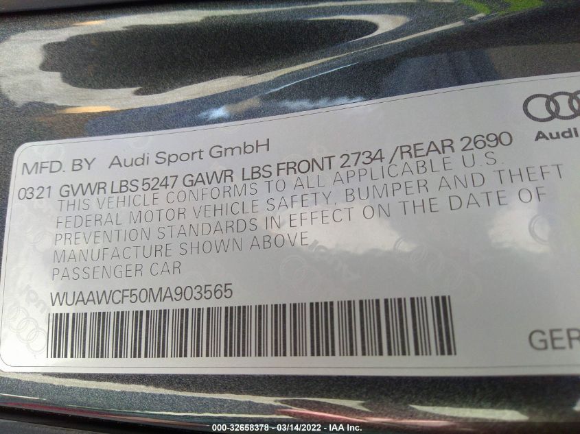 | VIN Number | WUAAWCF50MA903565 |